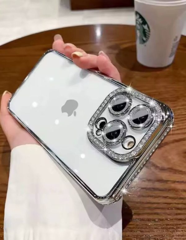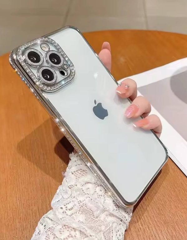 قاب موبایل آیفون دور نگینی نقره ای