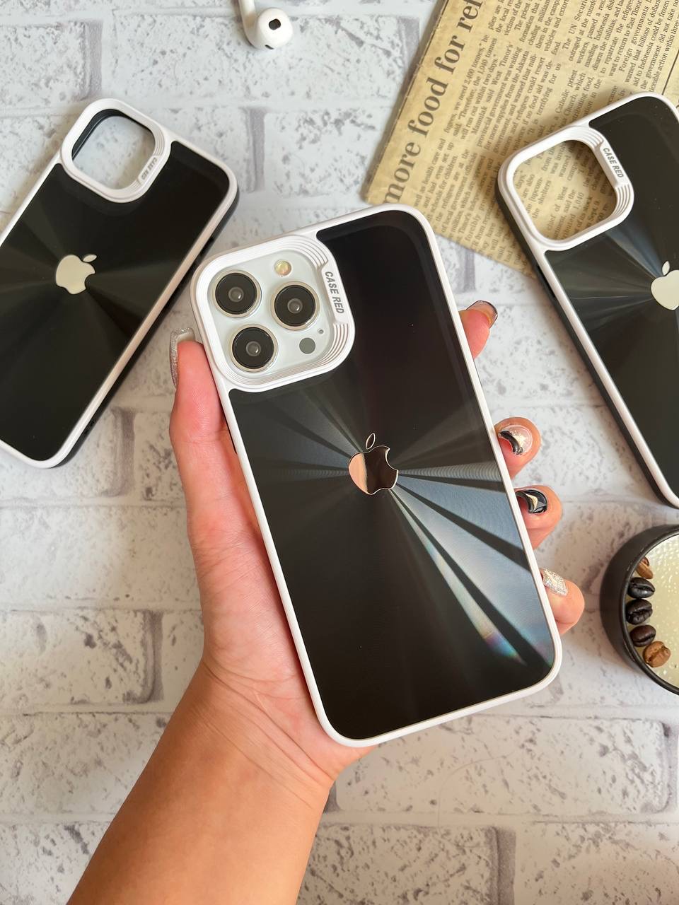 قاب موبایل آیفون لیزری مشکی سفید