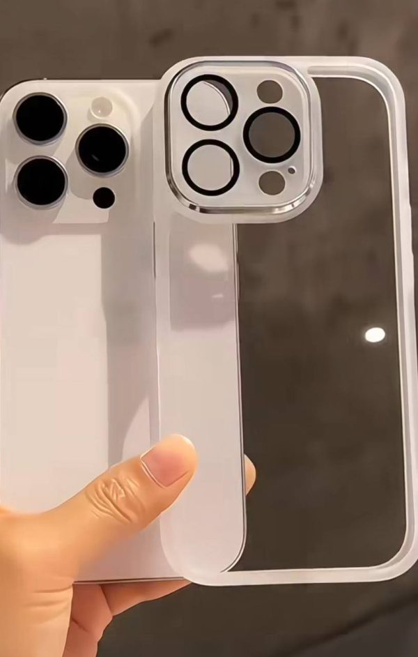 فریم سفید دور گوشی با پشت کاملاً شفاف